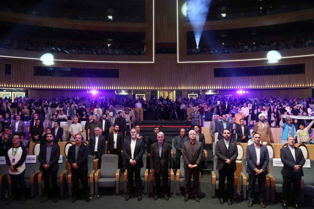 در ادامه، دو کودک بیانیهای درباره ایران قرائت کردند و سپس کلیپی با مضمون دفاع مقدس و جنگ ۱۲ روزه رژیم صهیونیستی علیه کشورمان به نمایش در آمد و با اهتزاز پرچم ایران، موسیقی ماندگار «ای ایران» پخش شد.